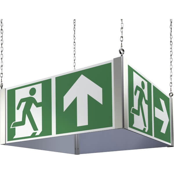 Artikel-Nr.: 50.3162 Rettungszeichen: Notausgang mit Zusatzzeichen | Deckenwürfel | 85,7x40cm