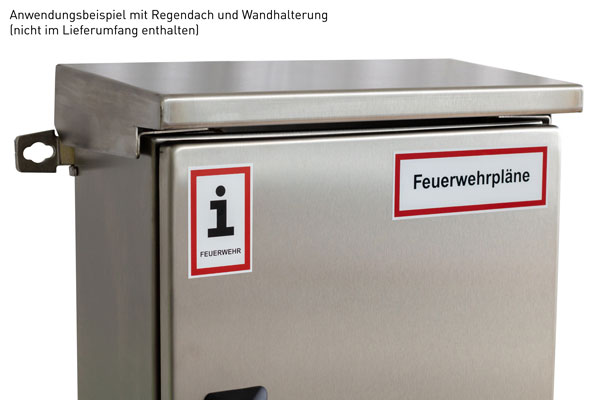 A4-Wandschrank für Feuerwehrpläne | Edelstahl | Schwenkhebelgriff für Profilhalbzylinder